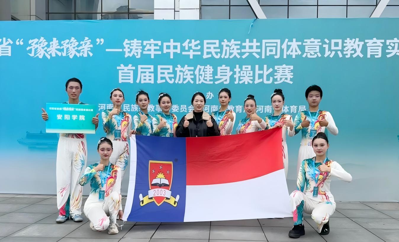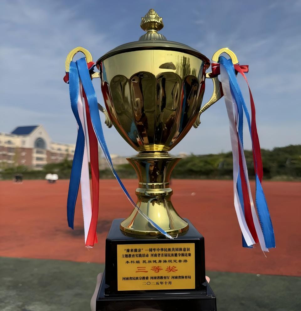 2025年10月17日至19日,由河南省民族宗教委、河南省教育厅、河南省体育局主办的河南省首届“豫来豫亲”民族健身操大赛在平顶山学院圆满落幕。我校代表队在本次大赛中表现优异,荣获本科组三等奖,充分展现了学校体育育人与民族团结教育的丰硕成果。