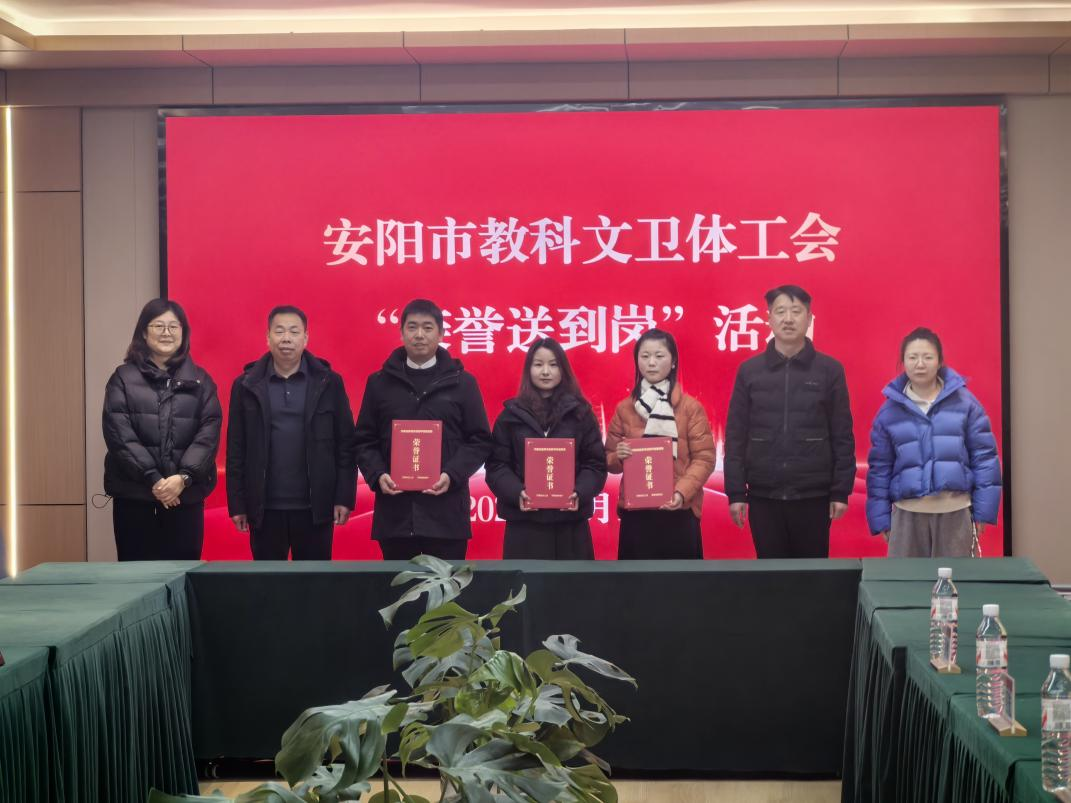 1月14日下午,安阳市教科文卫体工会主席崔月雷带队莅临安阳学院,开展“荣誉送到岗”专项表彰活动,为在2025年度全省教育系统教学技能竞赛中斩获佳绩的张强、杨柳和齐静然三位教师现场颁发凯发娱乐官网的荣誉证书,把工会组织对教育工作者的深切关怀与崇高敬意,实实在在送到教学工作一线。活动由我校副校长、工会主席张明选主持。