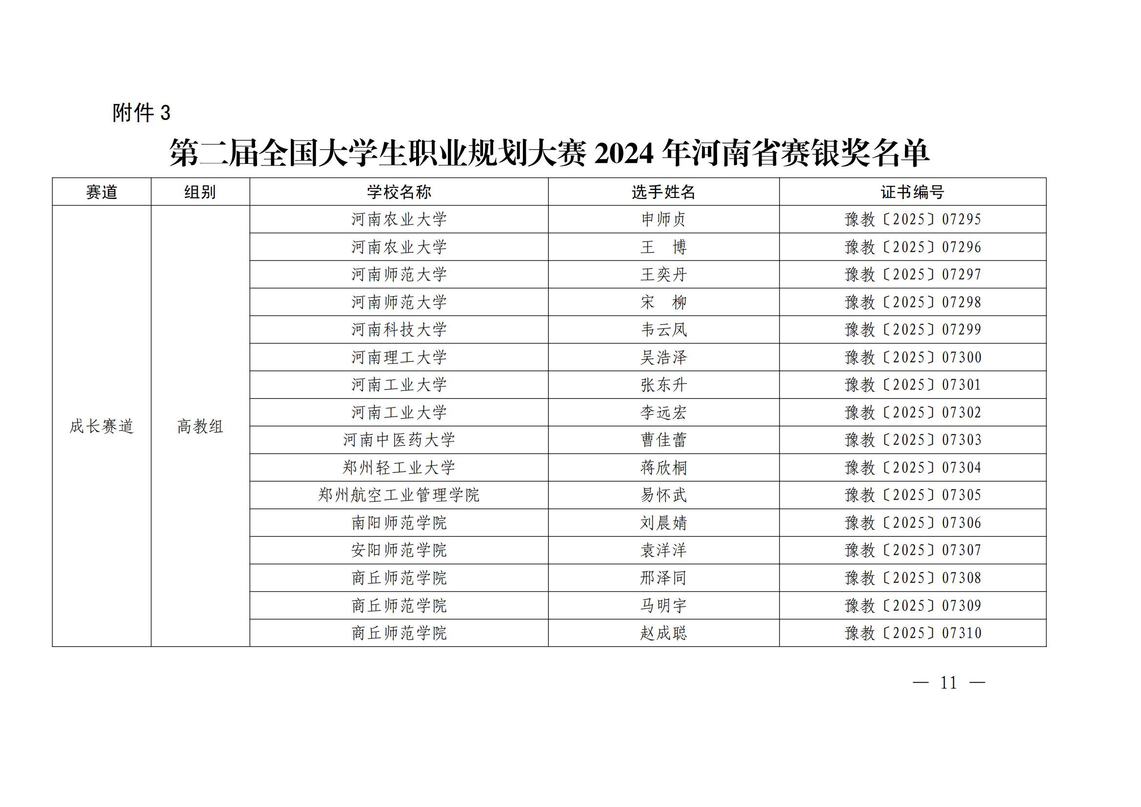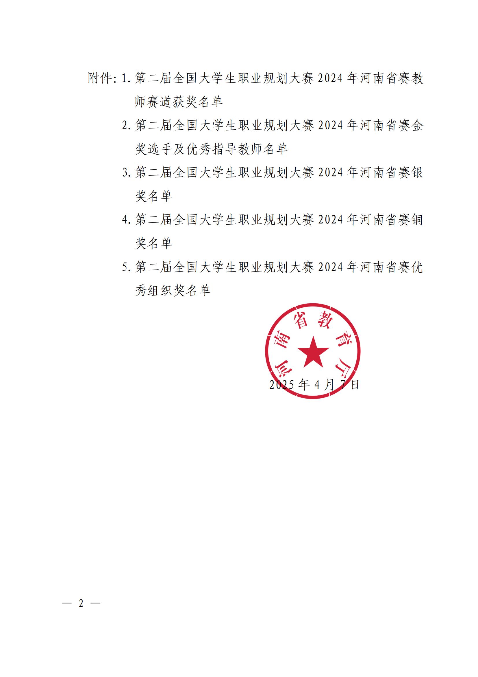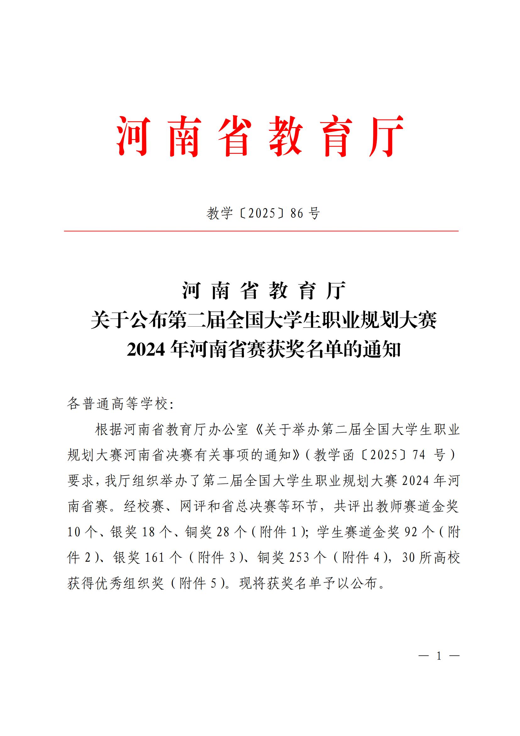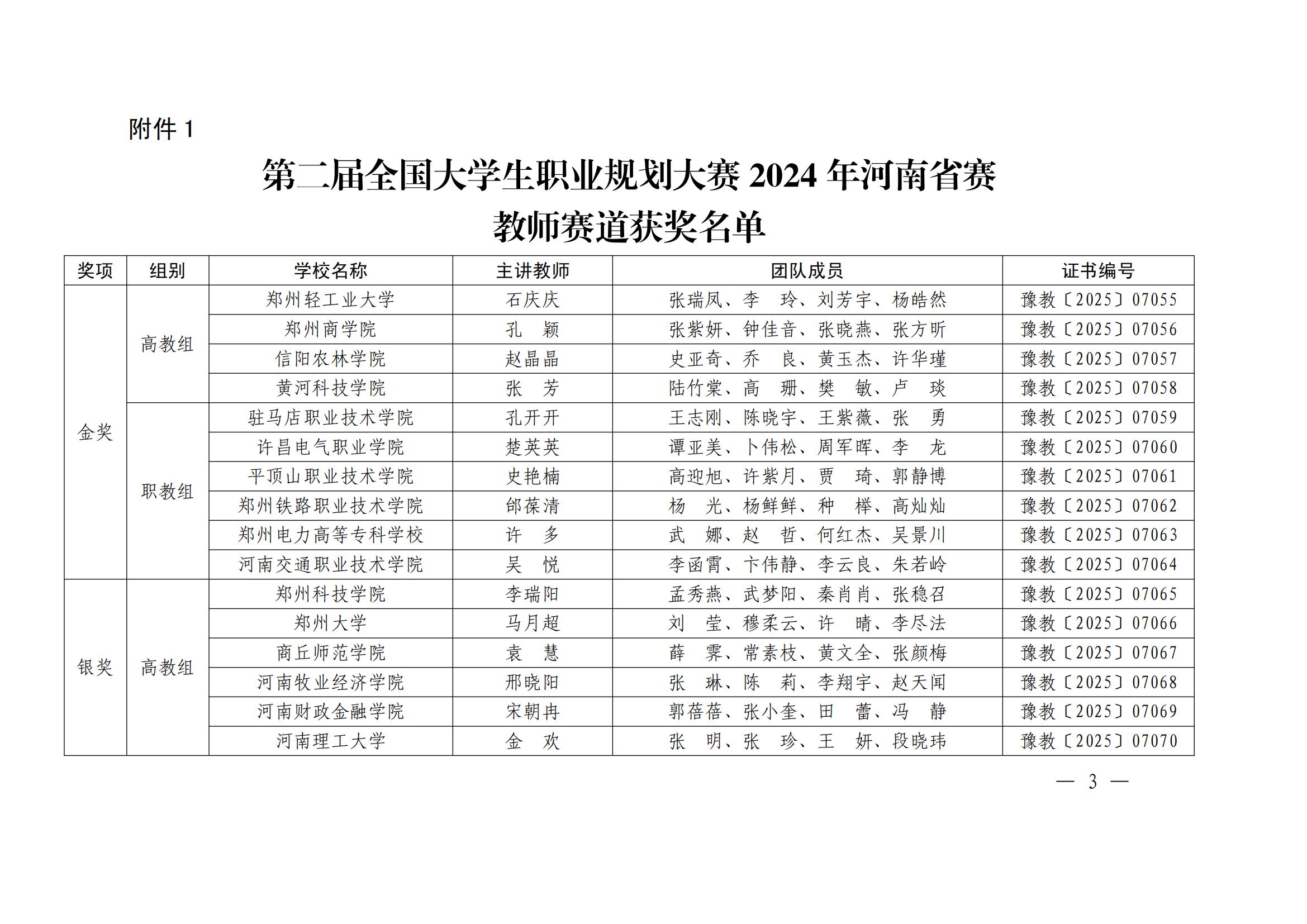 250411 教学〔2025〕86号 河南省教育厅关于公布第二届全国大学生职业规划大赛2024年河南省赛获奖名单的通知.pdf
