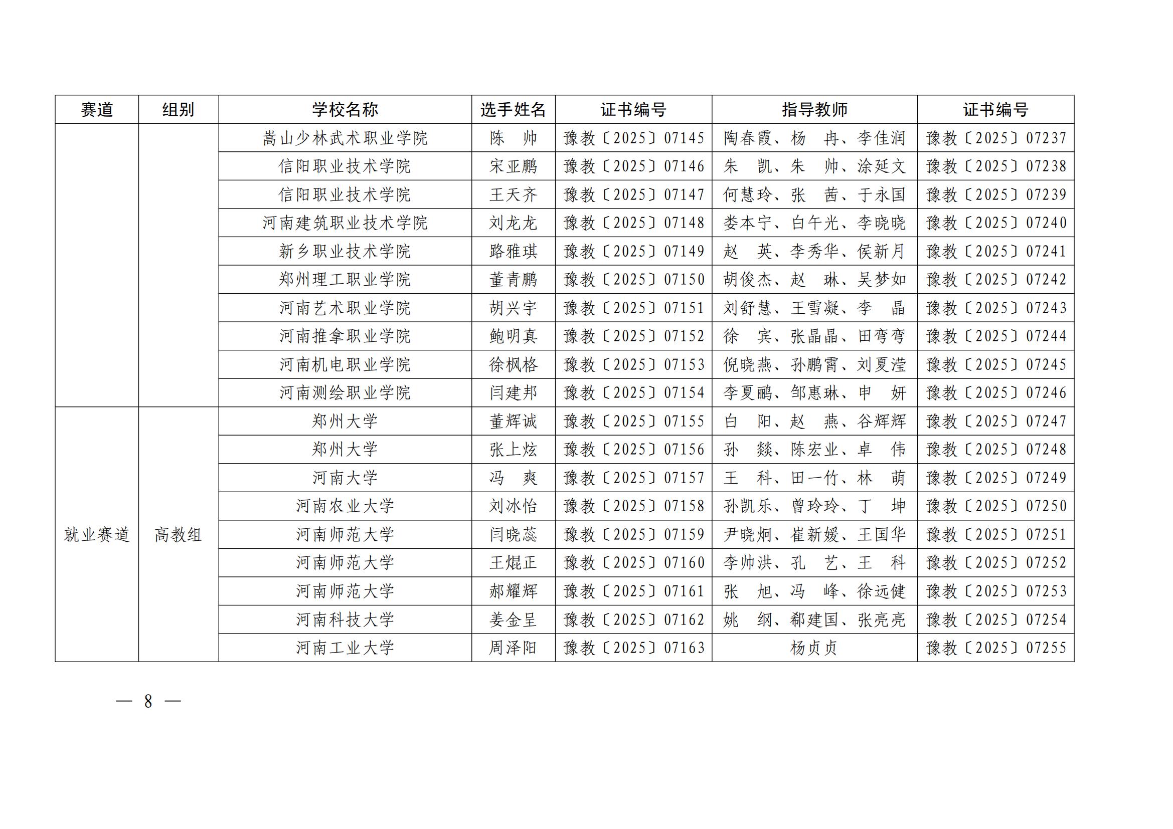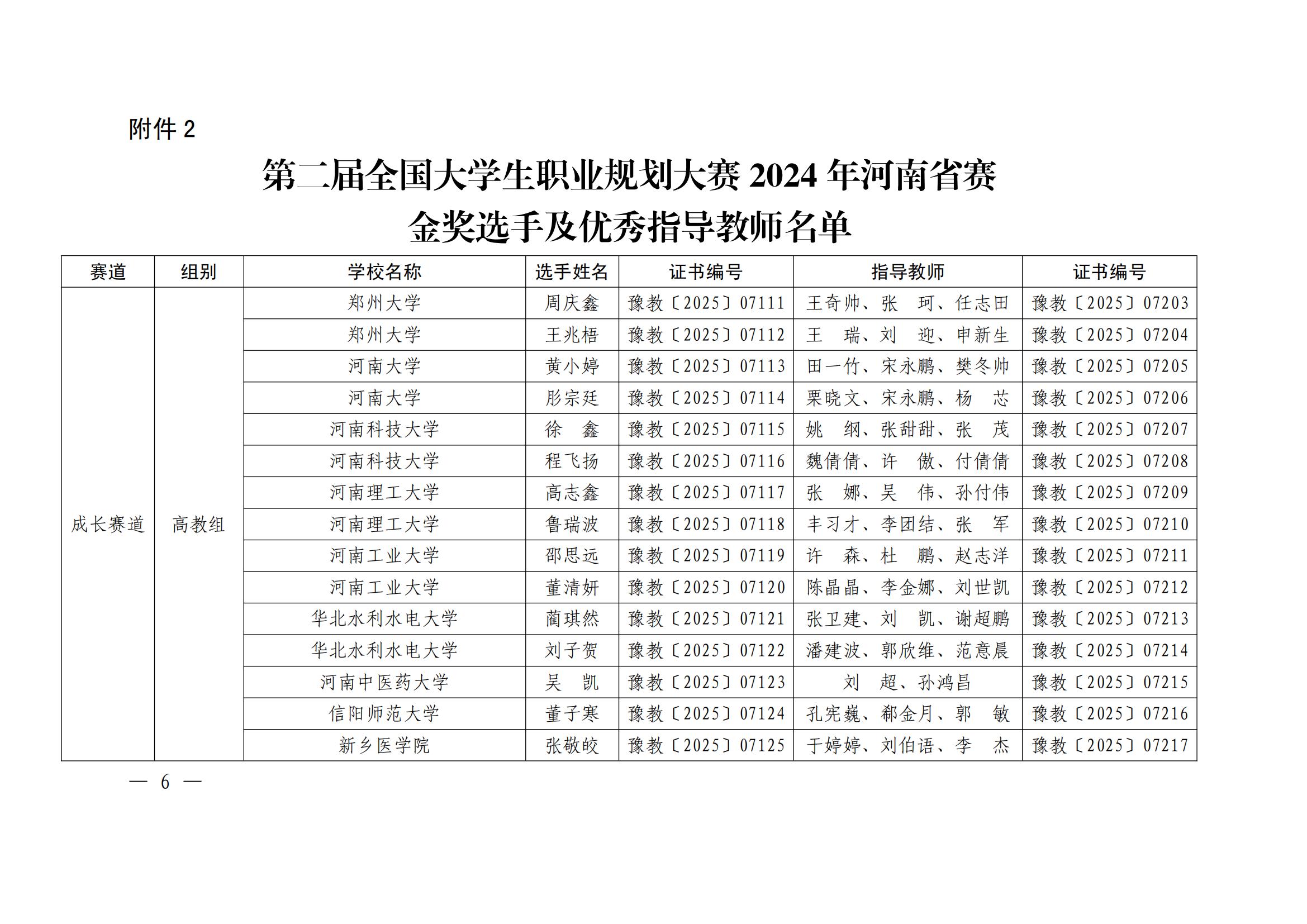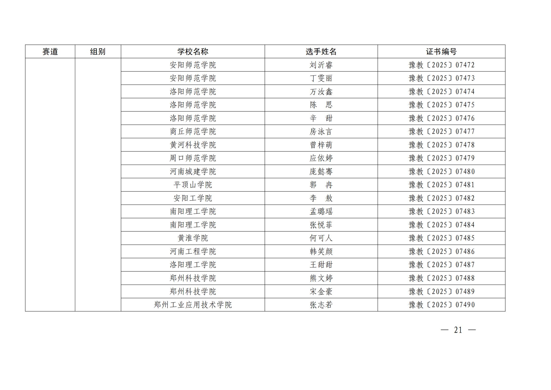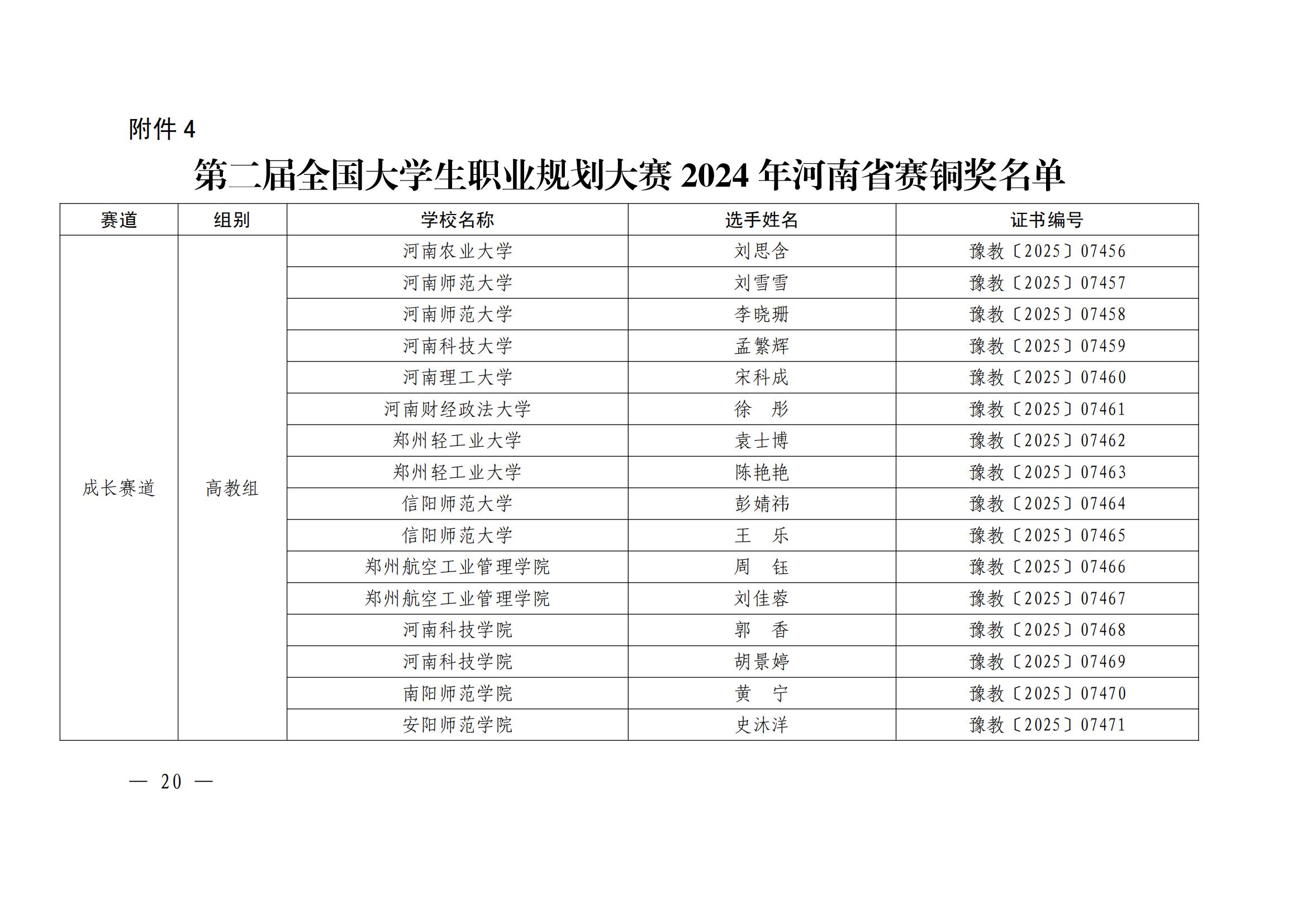 250411 教学〔2025〕86号 河南省教育厅关于公布第二届全国大学生职业规划大赛2024年河南省赛获奖名单的通知.pdf