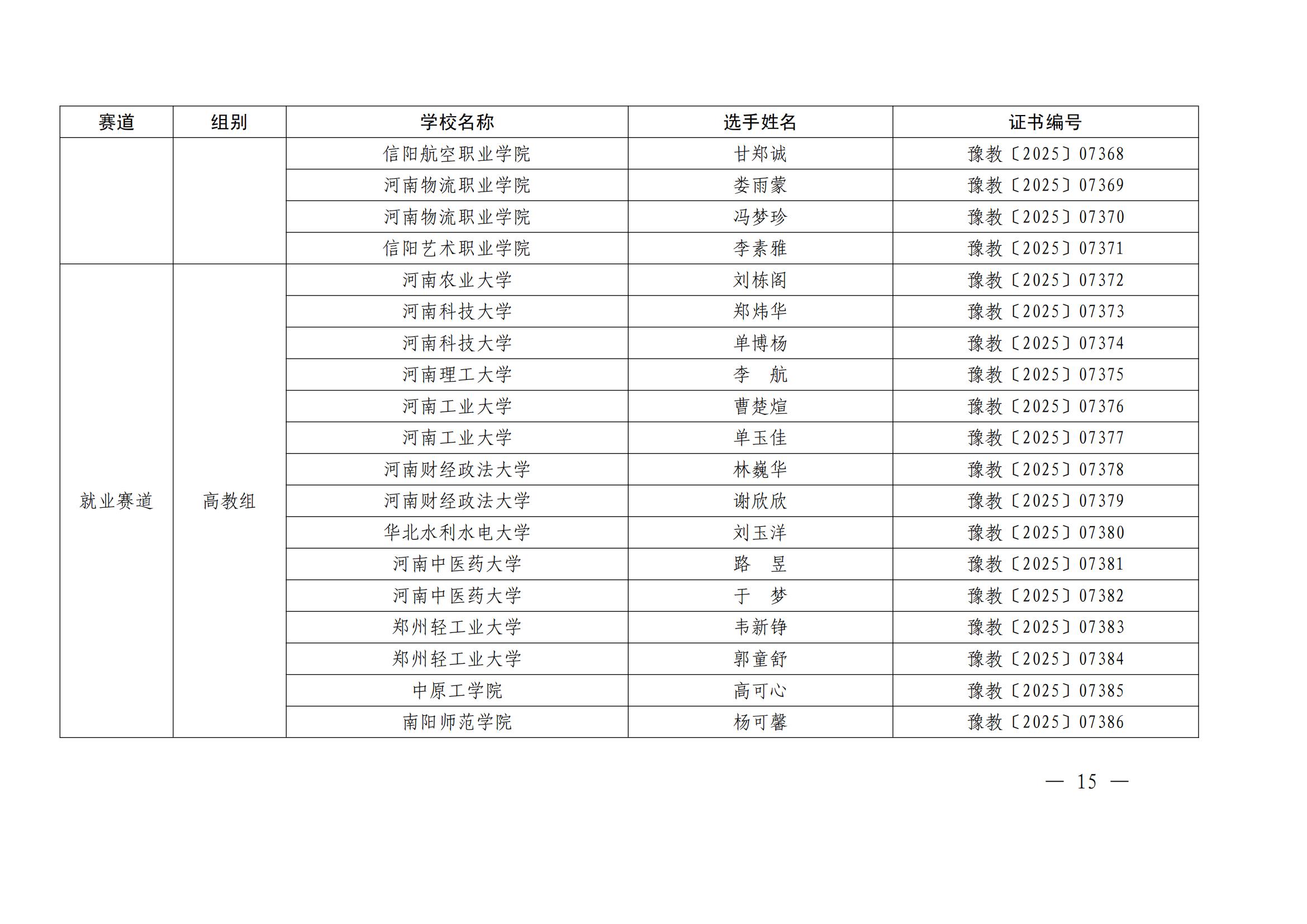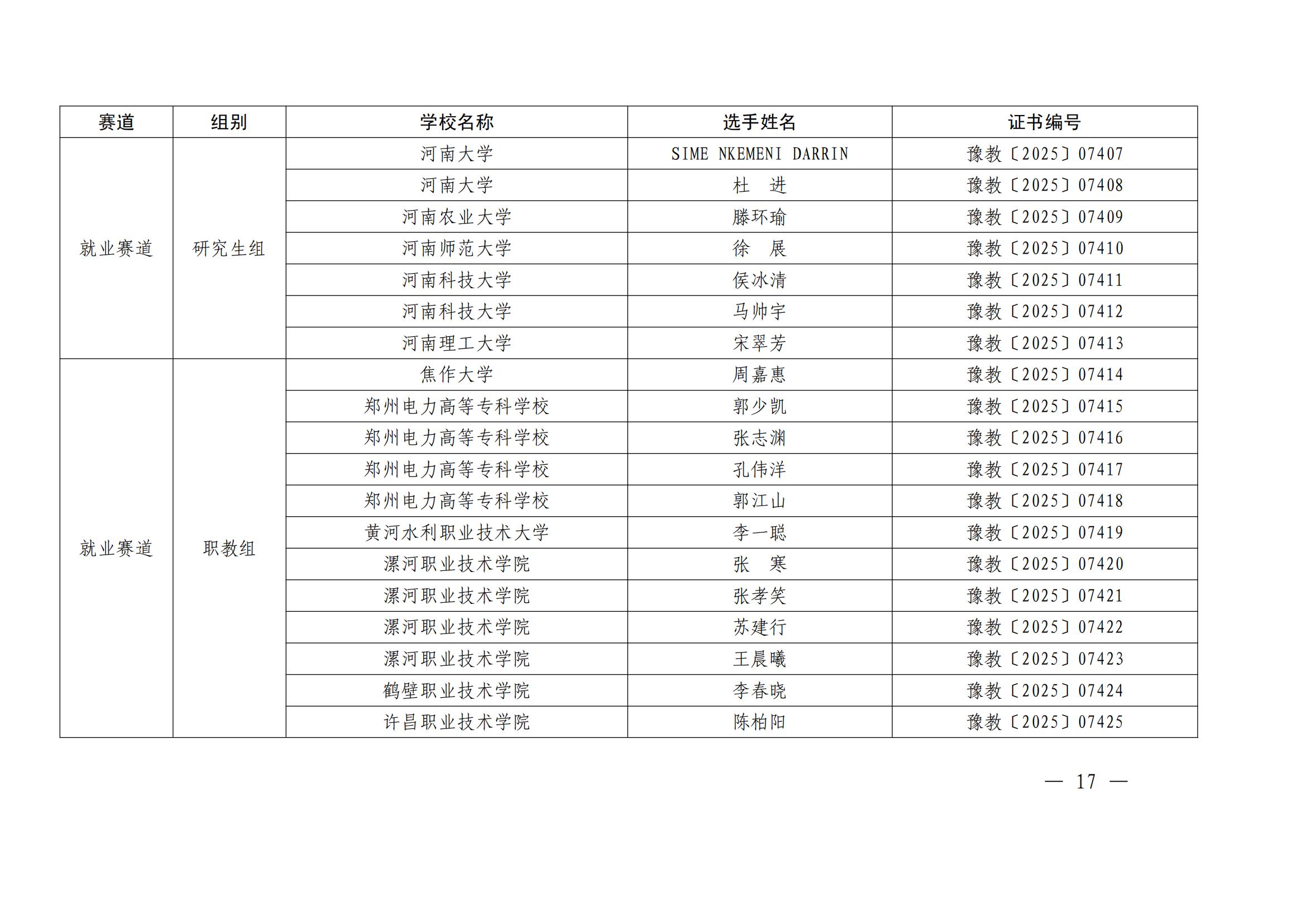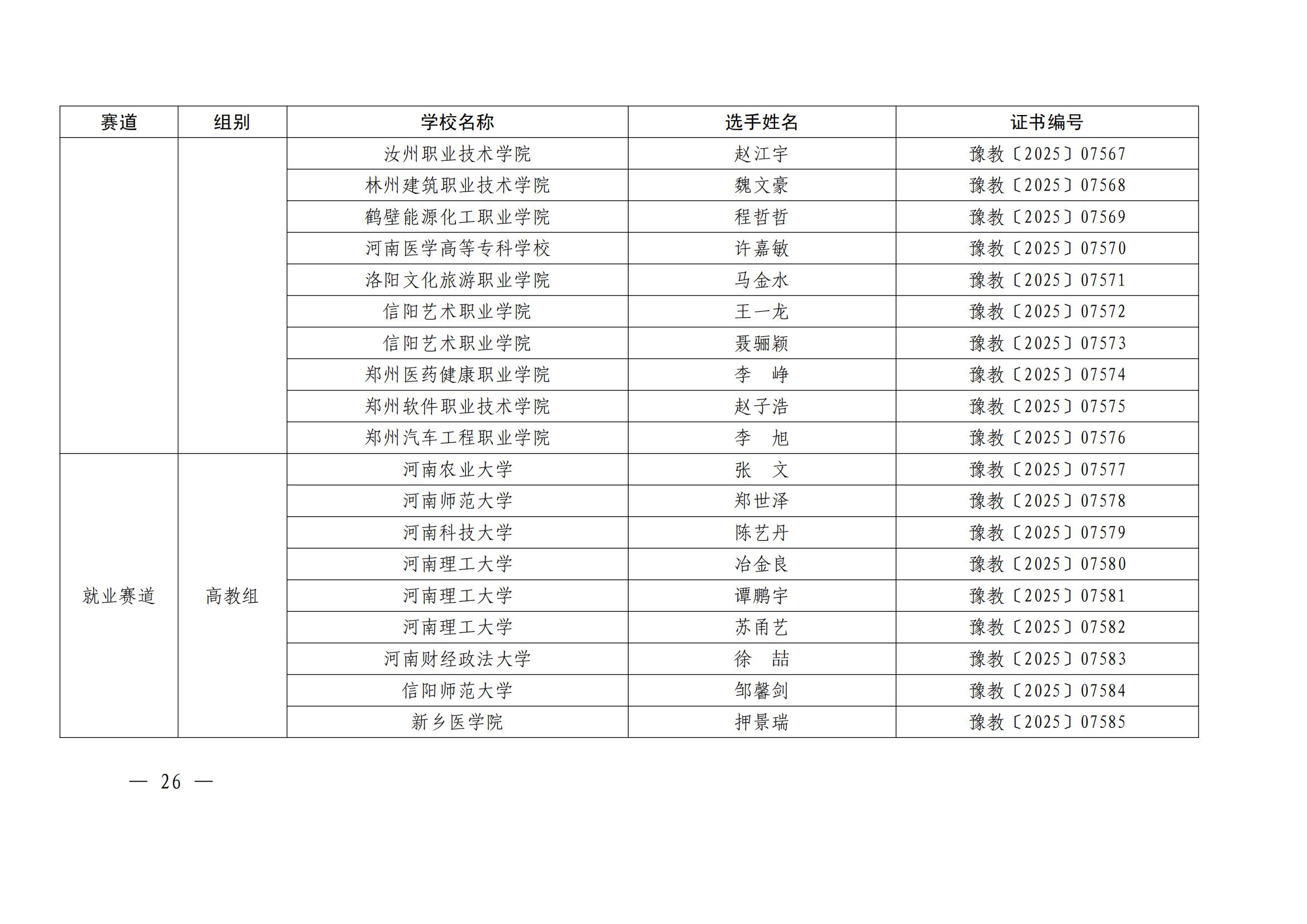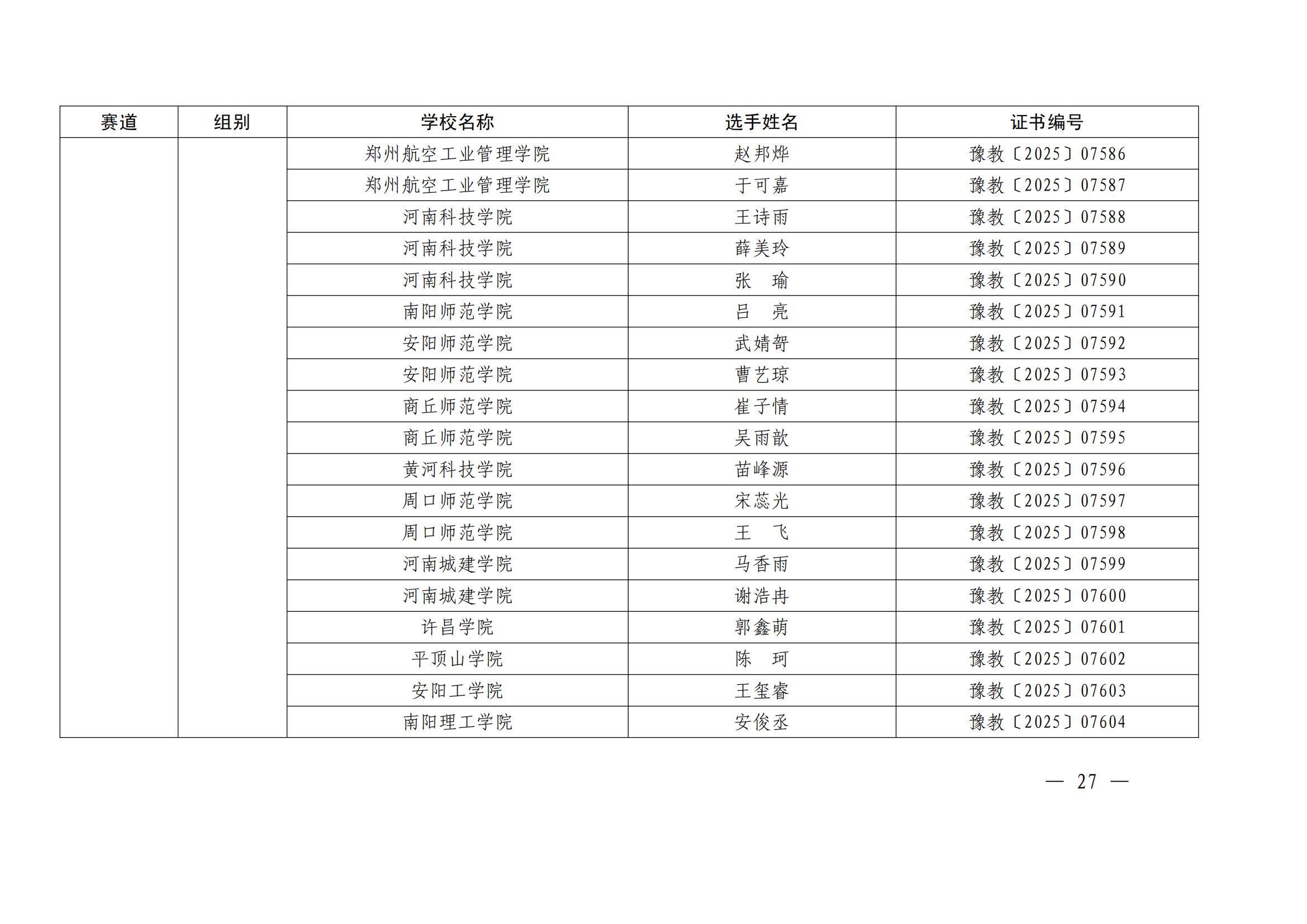 250411 教学〔2025〕86号 河南省教育厅关于公布第二届全国大学生职业规划大赛2024年河南省赛获奖名单的通知.pdf