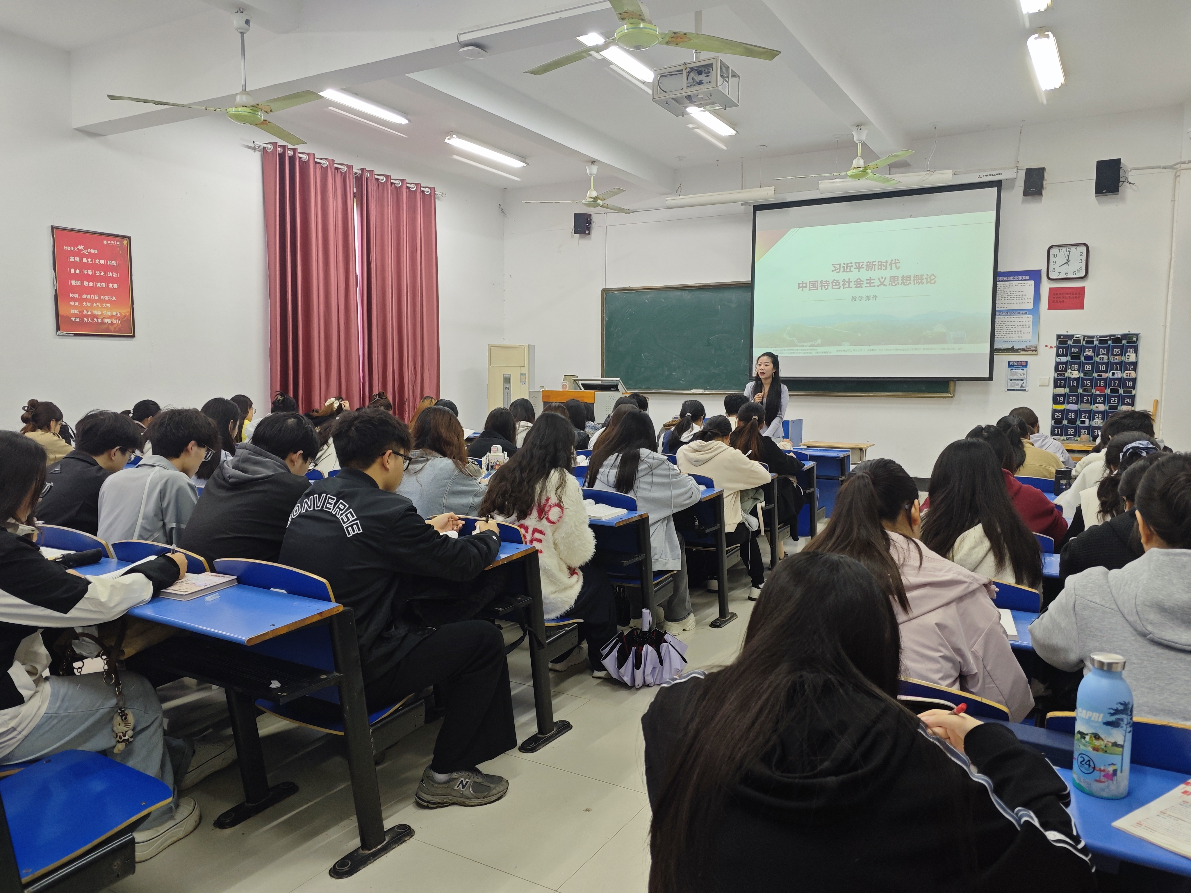 课堂上,李春燕围绕“全面深化改革”主题,通过深入的理论讲解、生动的案例分析和积极的课堂互动,引导学生深刻把握习近平新时代中国特色社会主义思想的核心要义、精神实质、丰富内涵及实践要求。孟伟全程认真聆听,详细记录教学重点,密切关注课堂氛围与学生听课状态。